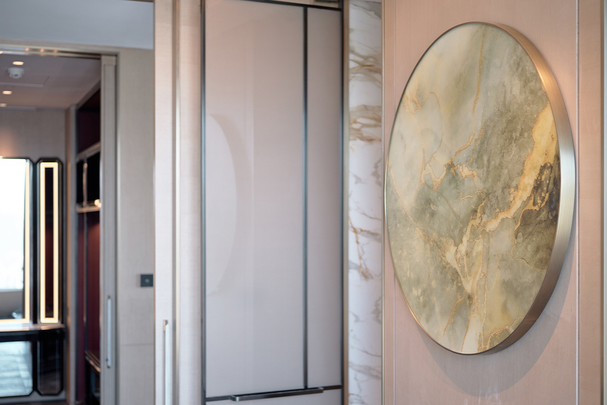 同时,作品还融入了具有标志性的人文景观元素,如滨海城市风貌、青岛市花以及钓鱼台府邸建筑等。这些元素通过传统工艺与现代艺术形式的结合,让人们感知到青岛深厚的文化底蕴以及酒店品牌的特点,从而打造出品牌形象的艺术亮点。