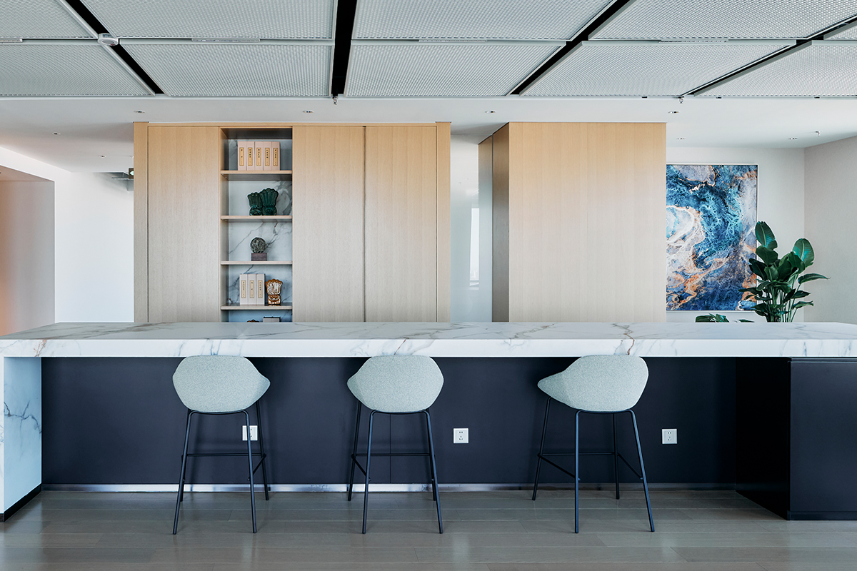 钰珵大厦(原盘古大观)以“水”为主题贯穿整个艺术设计,将东方文化的深邃与现代商务空间相结合,呈现出独特的视觉体验。位于北京亚奥商圈的大厦,灵感源自周边亚洲最大的城区人工水系和绿化景观,象征稳固、清澈与持续发展的生命力。水元素艺术品从大厦正前方延续至顶层会客区,象征着生命与智慧的流动,为商务空间注入灵感与活力,成就自然与文化的完美交融。